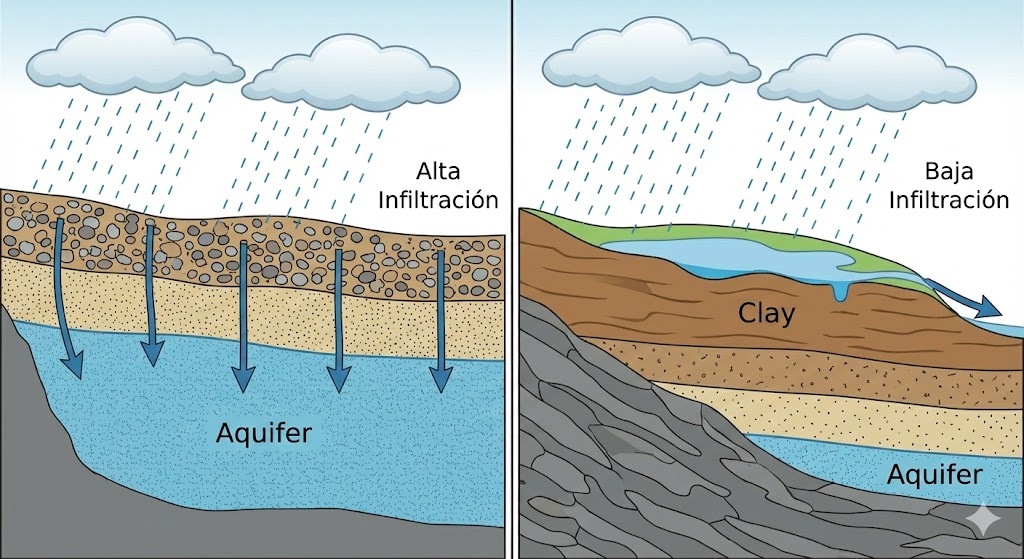 Existe una paradoja en la hidrología moderna: más lluvia no siempre significa más agua subterránea. * Lluvias moderadas y persistentes: Son ideales. Permiten que el suelo absorba el agua gradualmente, dándole tiempo para filtrarse hacia abajo.